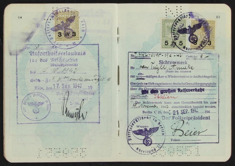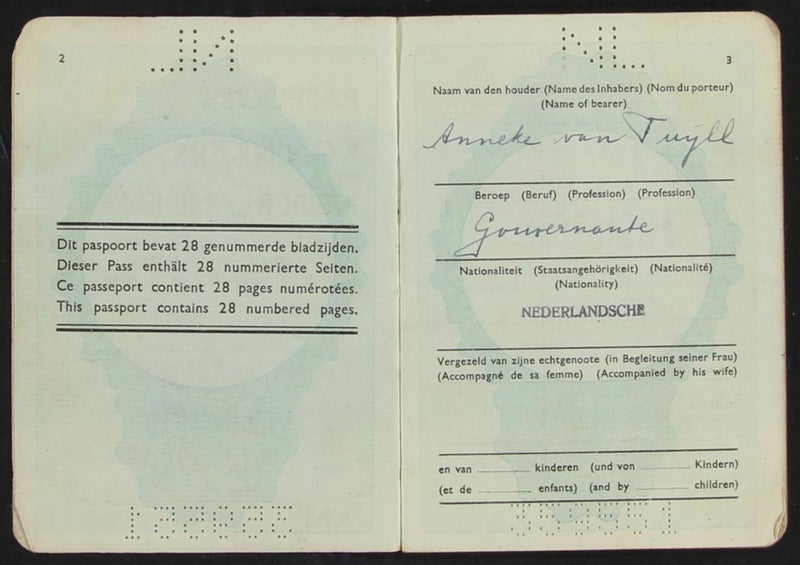 Paspoort van Helene (Hellen) Louise Ten Cate Brouwer onder de naam Anneke van Tuyll, een van haar schuilnamen.